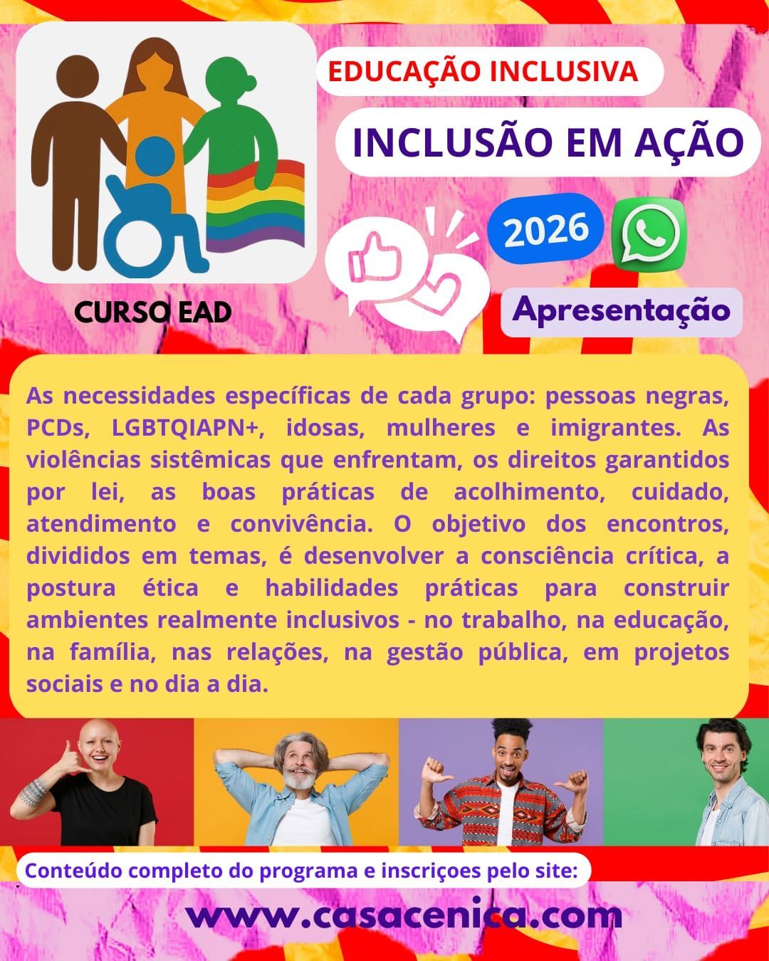 A Casa Cênica em 2026 prepara cursos e mentorias para você fazer direto da sua casa com qualidade de conteúdos e professores experientes e capacitados para ajudá-lo na sua jornada pessoal. Porque, sobretudo, a arte em diferentes países do mundo, como a Suíça e a Dinamarca são extremamente valorizadas e consideradas primordiais ao desenvolvimento humano, e por aqui, como um país criativo que somos, que pulsa arte e cultura, não pode ser diferente. Entendemos que arte anda de mãos dadas com o seu bem estar, sua saúde mental e física, o seu autoconhecimento e o desenvolvimento das suas potencialidades. Nosso desejo é que você tenha uma experiência transformadora, lúdica, profunda e prazerosa, e inclua o fazer arte em sua rotina, com as nossas aulas de teatro, expressão, dança e movimento, e em breve música.