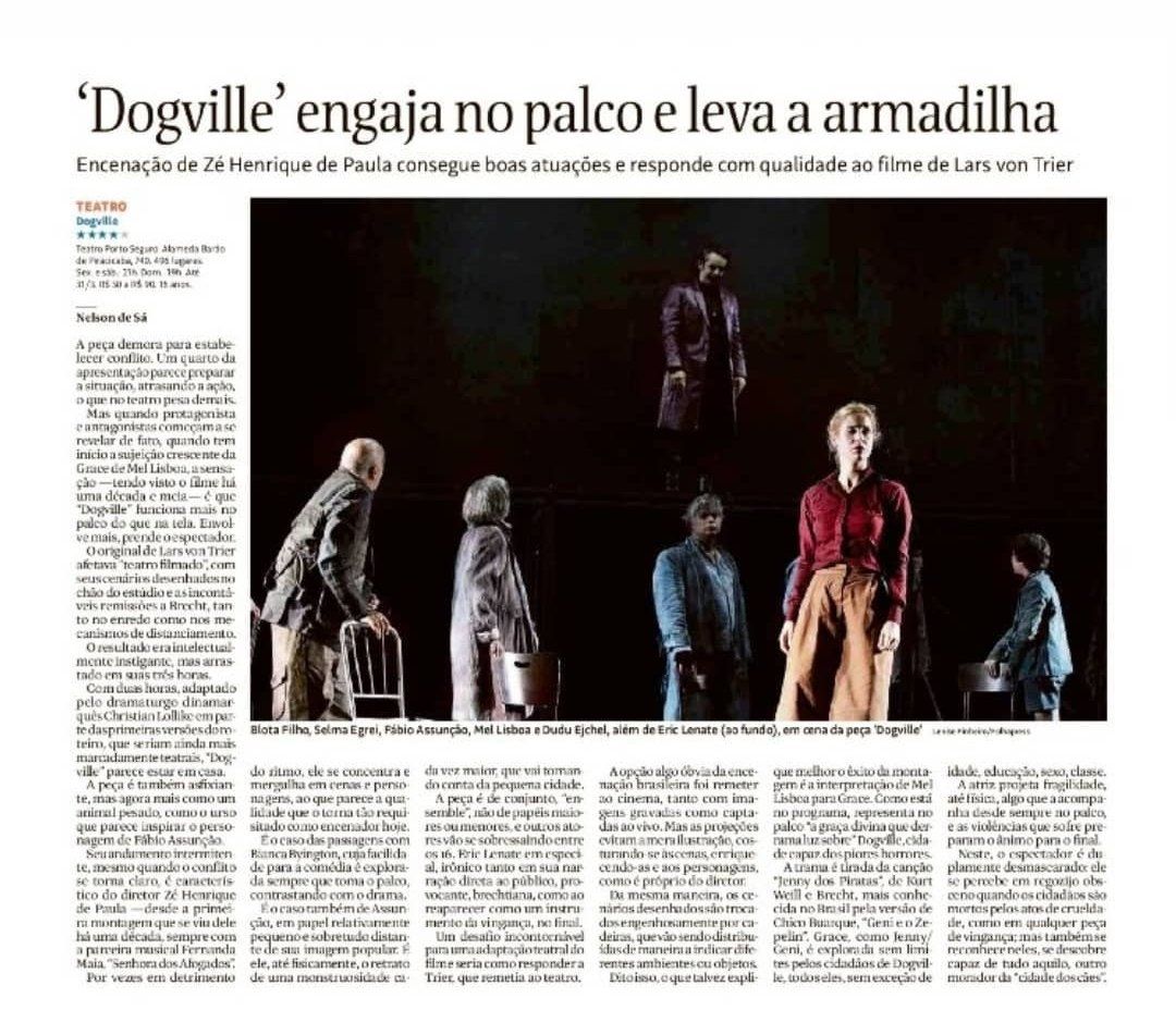 Prestação da assistência de produção em São Paulo, da versão brasileira para teatro do filme Dogville, de Lars von Trier, dirigido por Zé Henrique de Palma, que narra a chegada à uma pequena cidade de uma misteriosa mulher chamada Grace