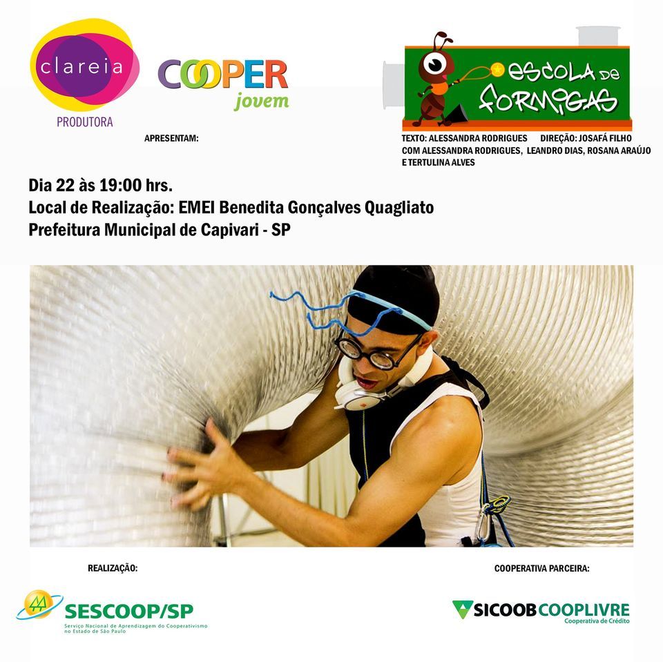 Criação e circulação pelo interior paulista do espetáculo infanto-juvenil escrito por Alessandra Rodrigues, e dirigido por Josafá Alves , em parceria com o SESCOOP (Serviço Nacional de aprendizagem do cooperativismo do Estado de São Paulo), que conta a história de união de quarto formigas adolescentes divertidas na tentativa de se salvarem da enchente do formigueiro.